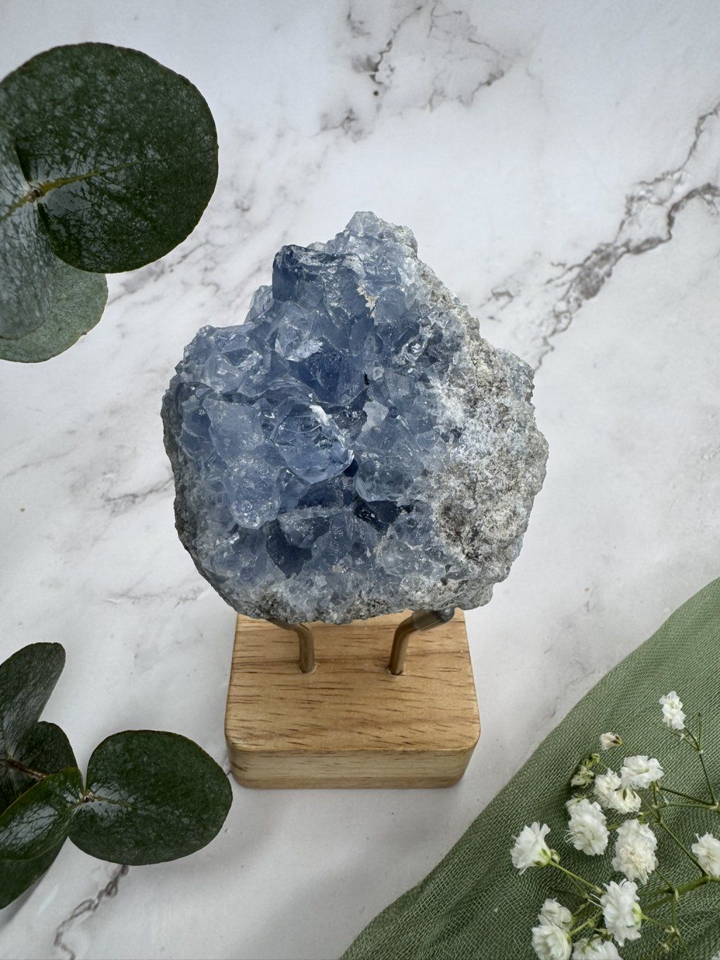 Jeho sytá nebeská modř přitahuje pohled i mysl. Stačí chvíli posedět v jeho blízkosti a ruch dne se začne rozplývat. Celestýn je kamenem vnitřního míru, lehkosti a tichého štěstí.