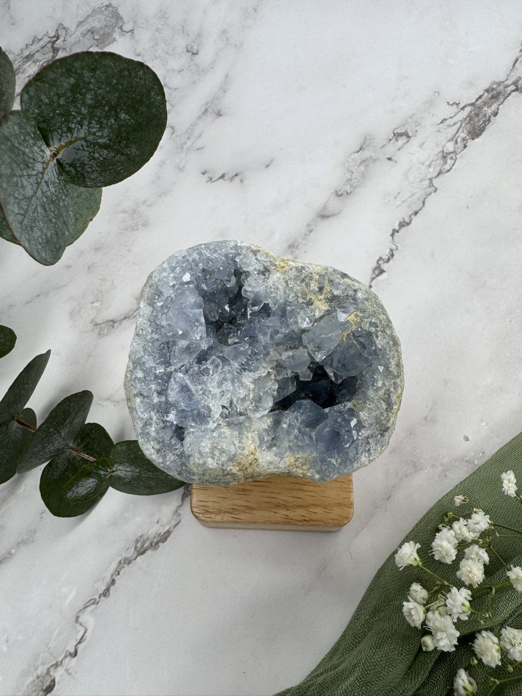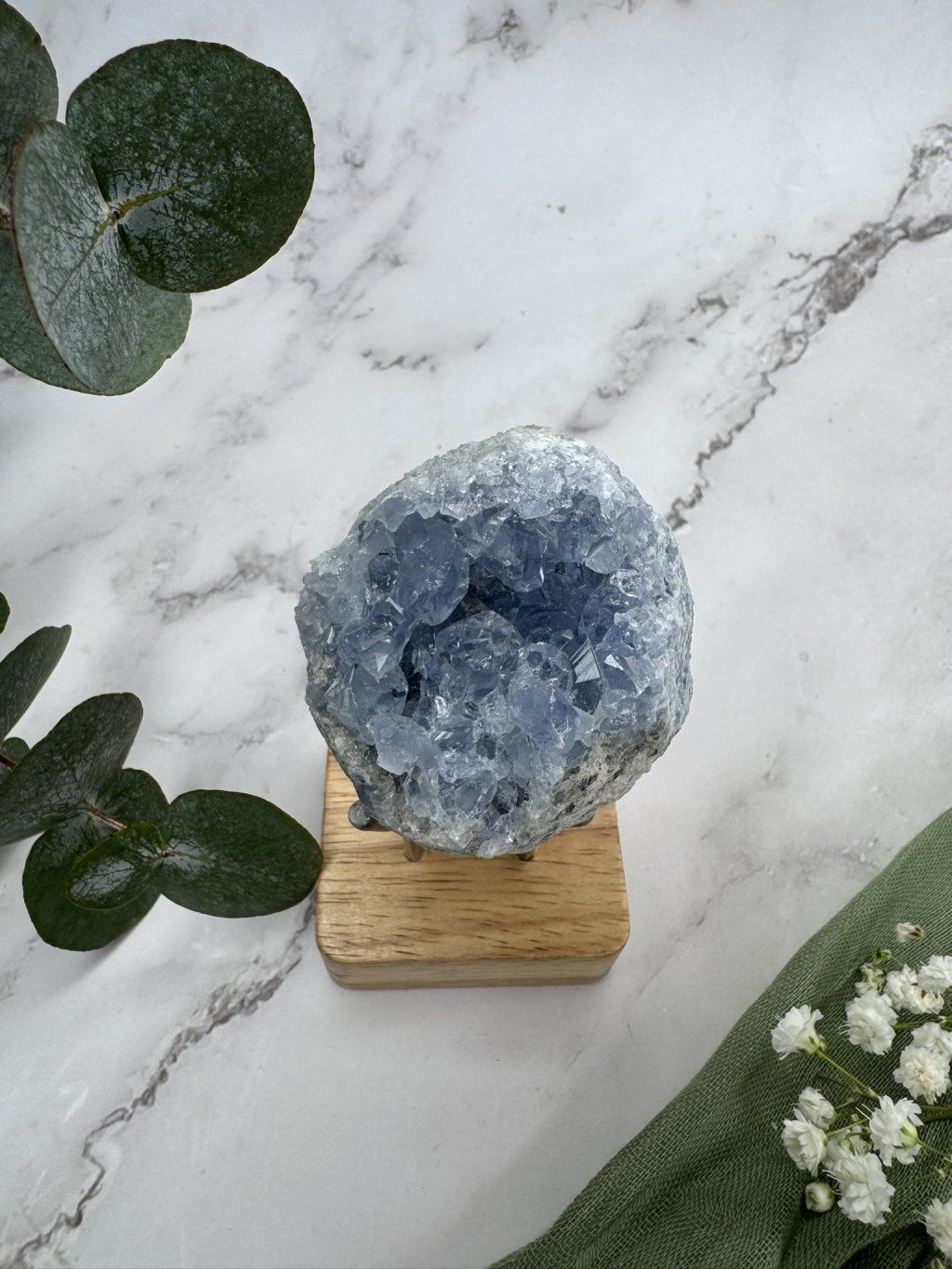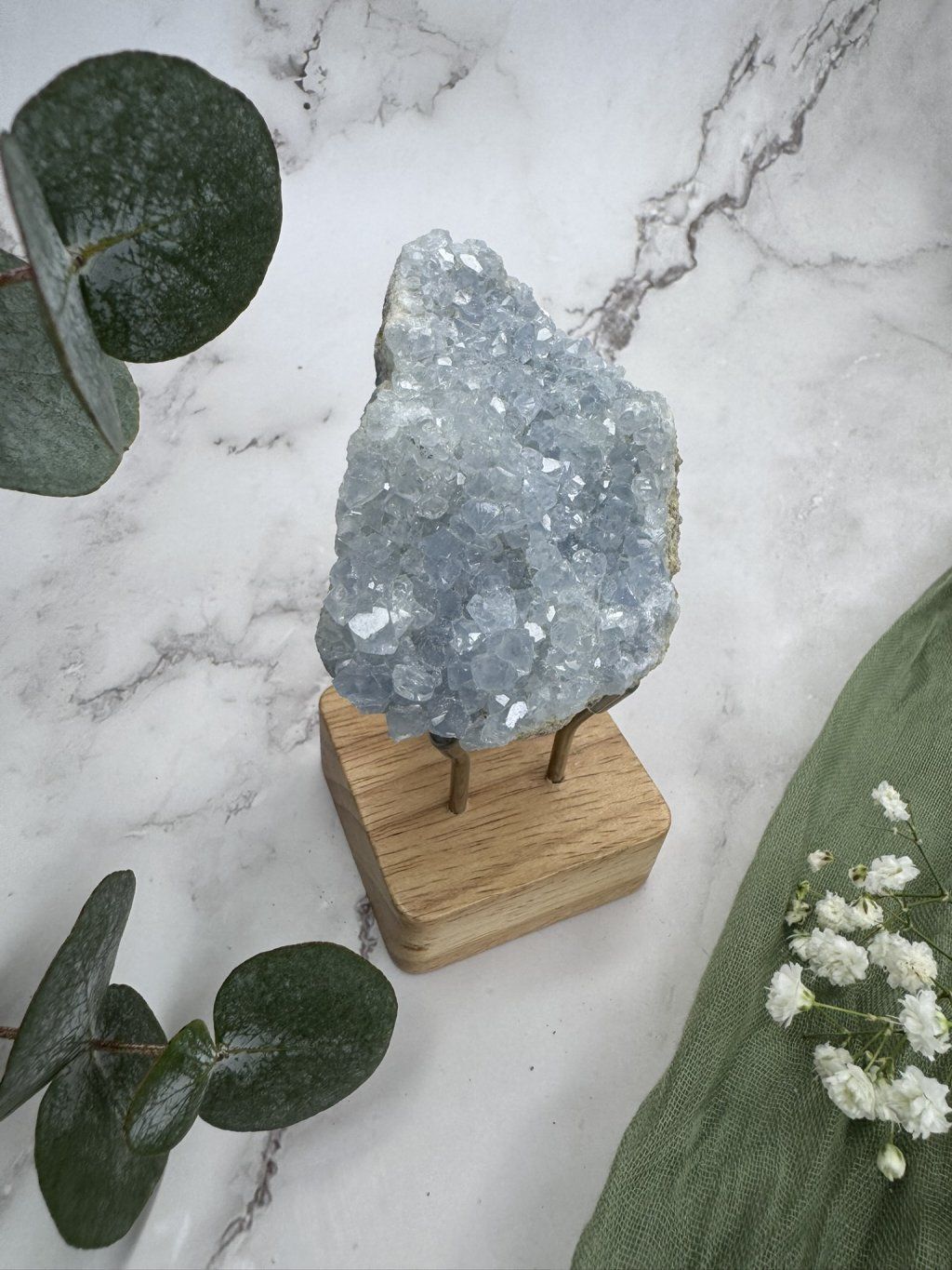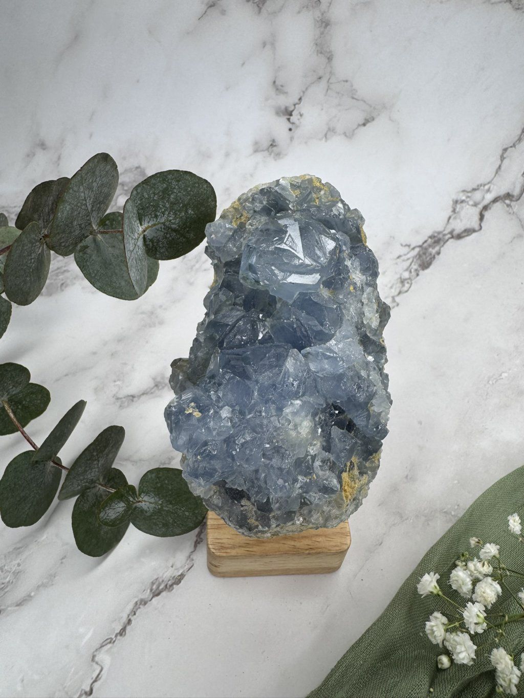Položte drúzu celestýnu tam, kde chcete cítit klid. Na pracovní stůl, do ložnice, do meditačního koutku nebo do prostoru, kde často komunikujete. Jeho přítomnost jemně pročistí atmosféru a přinese pocit lehkosti.