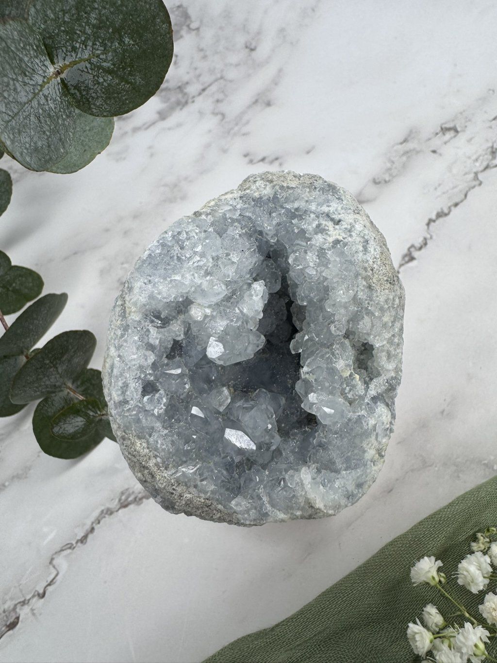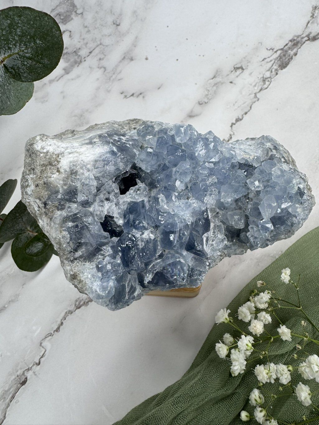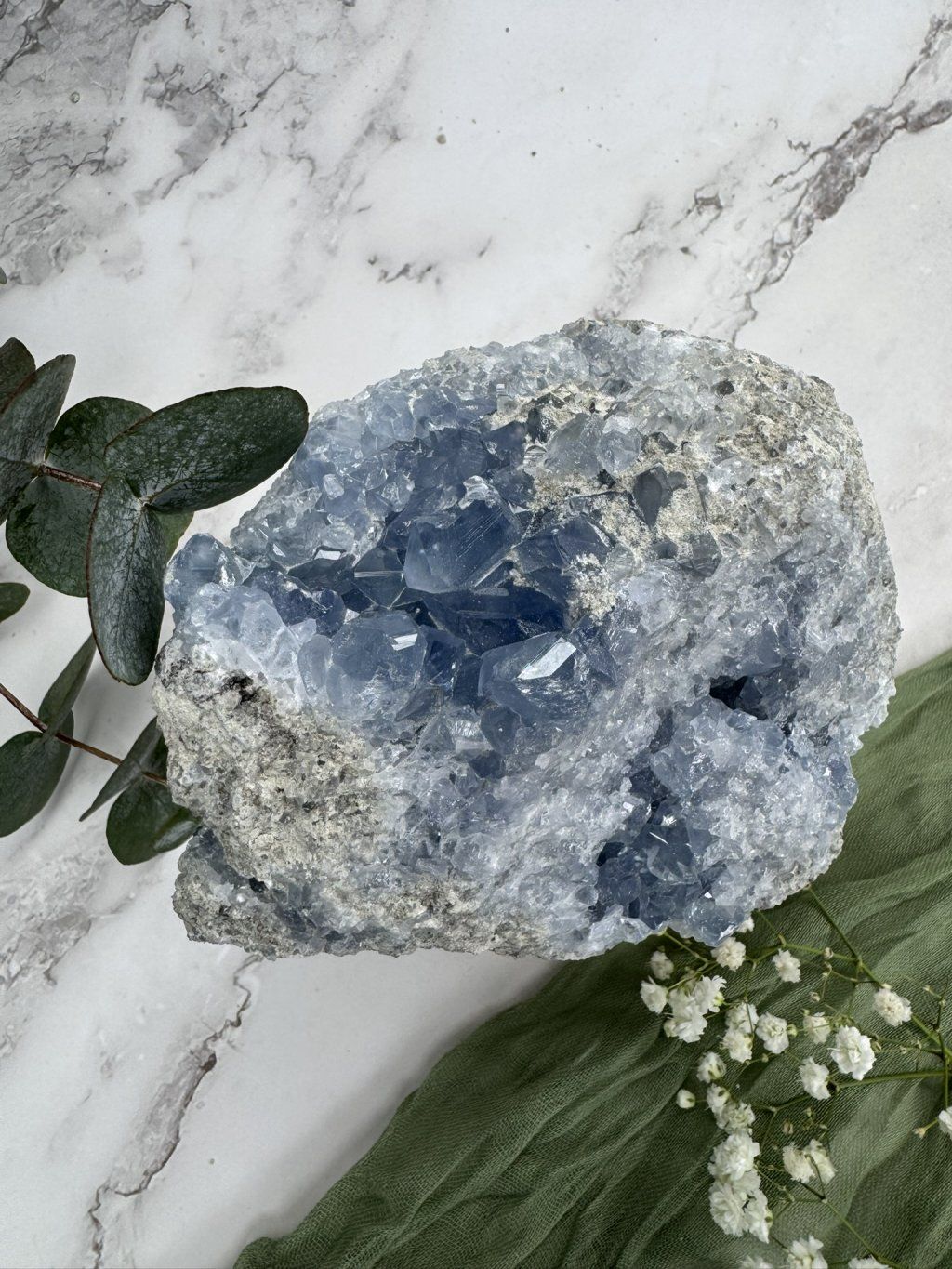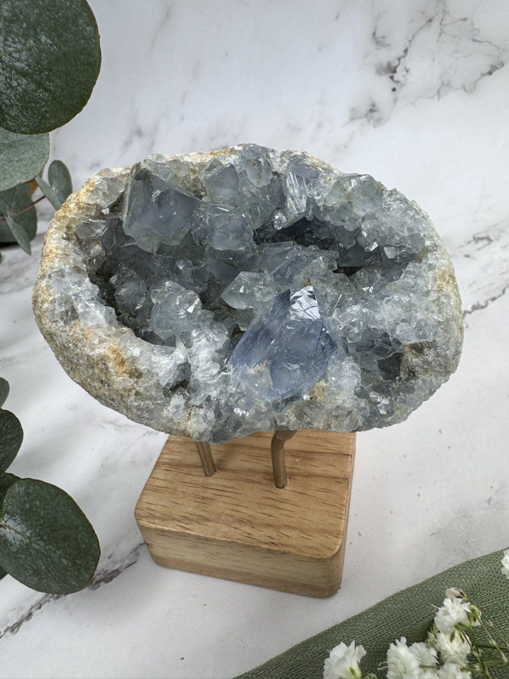 Položte drúzu celestýnu tam, kde chcete cítit klid. Na pracovní stůl, do ložnice, do meditačního koutku nebo do prostoru, kde často komunikujete. Jeho přítomnost jemně pročistí atmosféru a přinese pocit lehkosti.