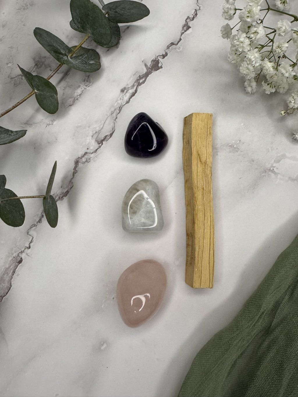 Chcete si kromě krystalů vyčistit také svůj domov? Využijte naši harmonizační sadu se šalvějí, Palo Santo dřevem a krystaly pro harmonizaci prostoru.