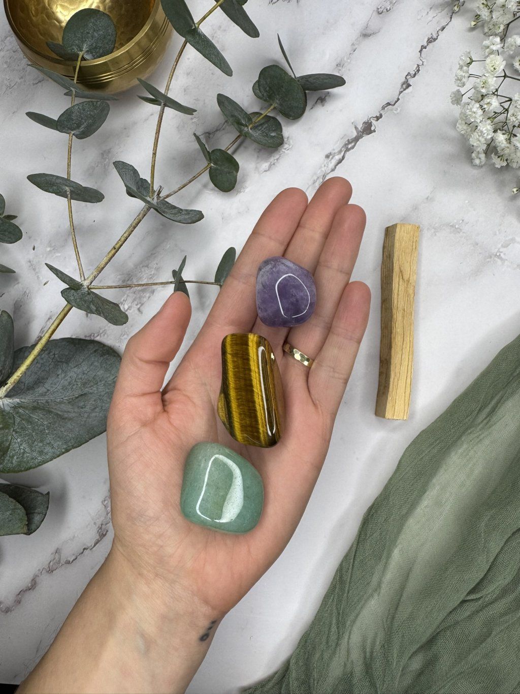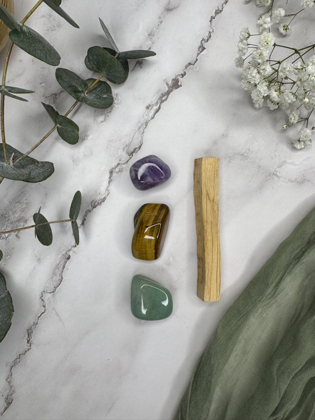 Chcete si kromě krystalů vyčistit také svůj domov? Využijte naši harmonizační sadu se šalvějí, Palo Santo dřevem a krystaly pro harmonizaci prostoru.