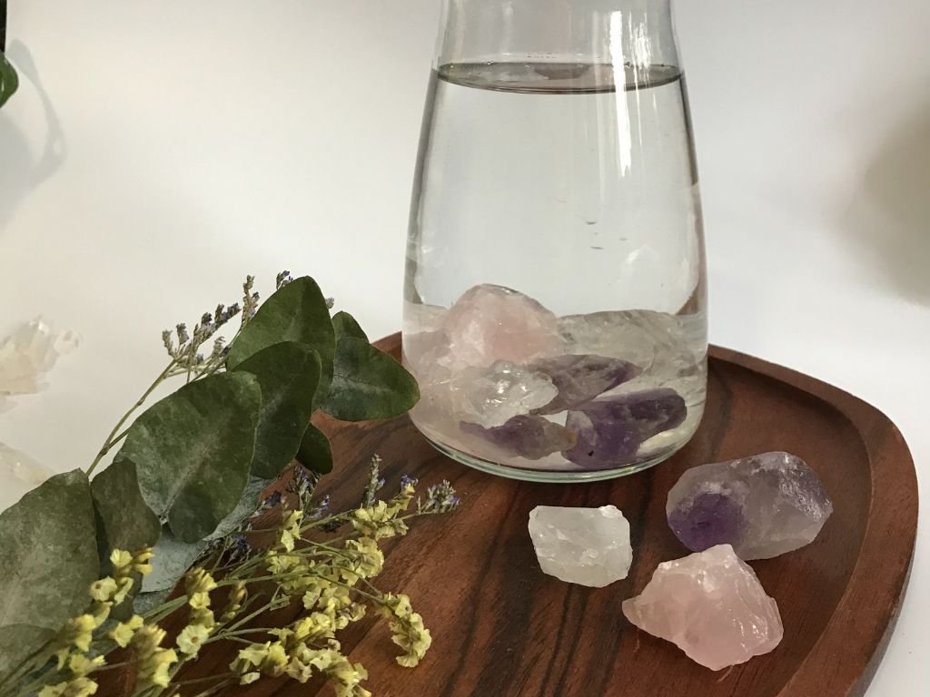 Krystalová voda je obyčejná voda obohacená o přítomnost přírodních minerálů. Když jsou kameny vložené do vody, dochází k jemnému propojení – voda se ladí na jejich přirozené vibrace a získává klidnější, vyváženější charakter. Mnoho lidí ji vnímá jako způsob, jak vodu „oživit“ a zároveň si během dne dopřát chvíli zastavení a pozornosti k sobě.