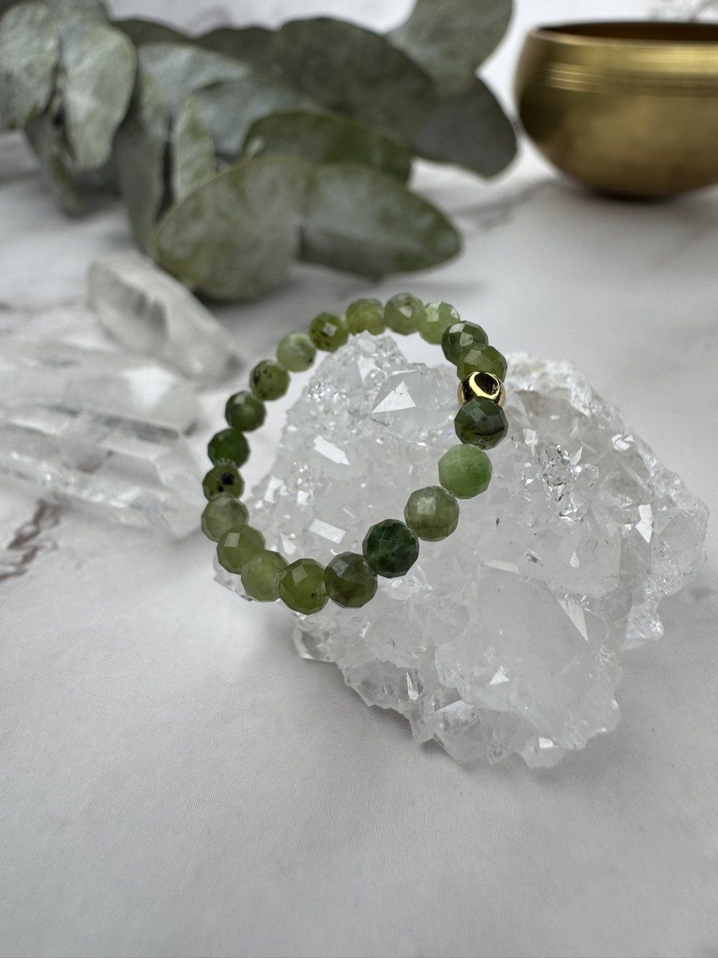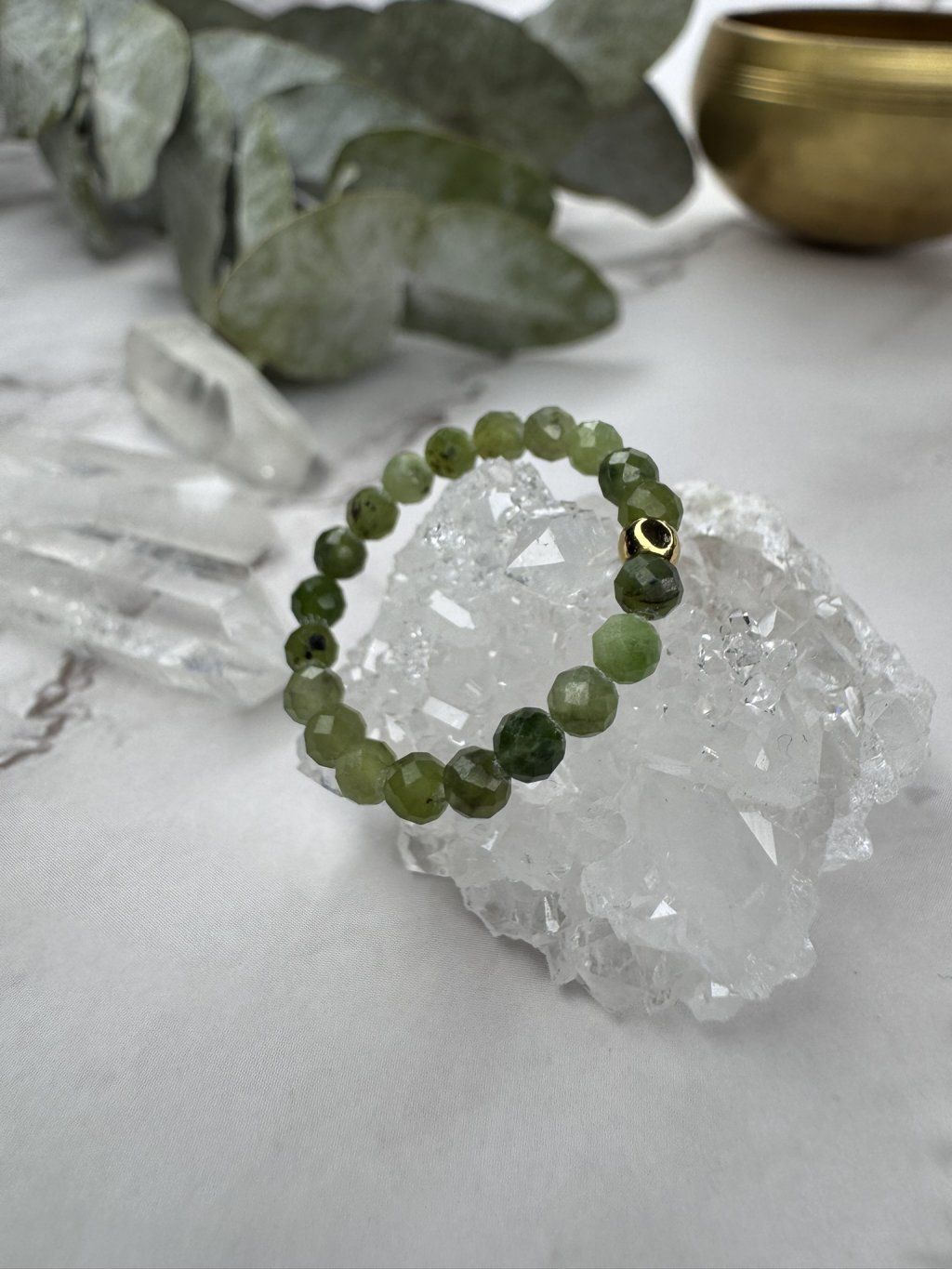 Naše prsteny z minerálů vznikají s důrazem na minimalismus a jemnost. Drobné kuličky o průměru 3 mm působí nenápadně, ale přesto zaujmou – hlavně díky tomu, že každý minerál má svůj vlastní charakter. Celý prsten z broušených jadeitů je navlečený na tenké, pružné gumičce, takže se pohodlně nosí a hezky se přizpůsobí prstu o obvodu cca 7 cm (velikost M) nebo 6,5 cm (velikost S).