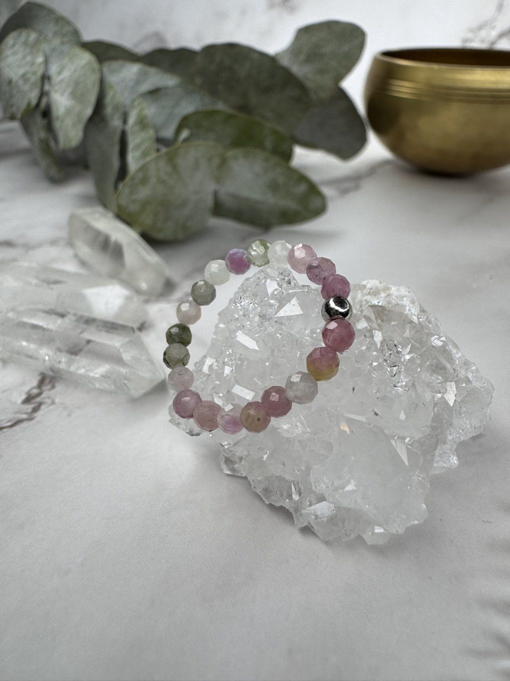 Naše prsteny z minerálů vznikají s důrazem na minimalismus a jemnost. Drobné kuličky o průměru 2 až 3,5 mm působí nenápadně, ale přesto zaujmou – hlavně díky tomu, že každý minerál má svůj vlastní charakter. Celý prsten z broušených turmalínů je navlečený na tenké, pružné gumičce, takže se pohodlně nosí a hezky se přizpůsobí prstu o obvodu cca 7 cm (velikost M) nebo 6,5 cm (velikost S).