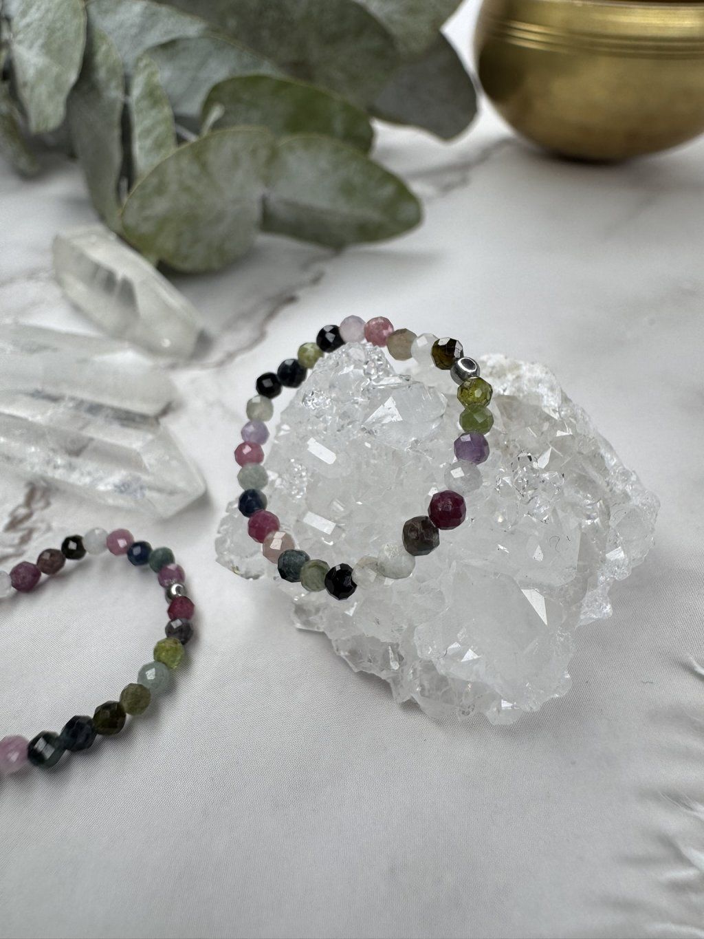 Naše prsteny z minerálů vznikají s důrazem na minimalismus a jemnost. Drobné kuličky o průměru 2 až 3,5 mm působí nenápadně, ale přesto zaujmou – hlavně díky tomu, že každý minerál má svůj vlastní charakter. Celý prsten z broušených turmalínů je navlečený na tenké, pružné gumičce, takže se pohodlně nosí a hezky se přizpůsobí prstu o obvodu cca 7 cm (velikost M) nebo 6,5 cm (velikost S).