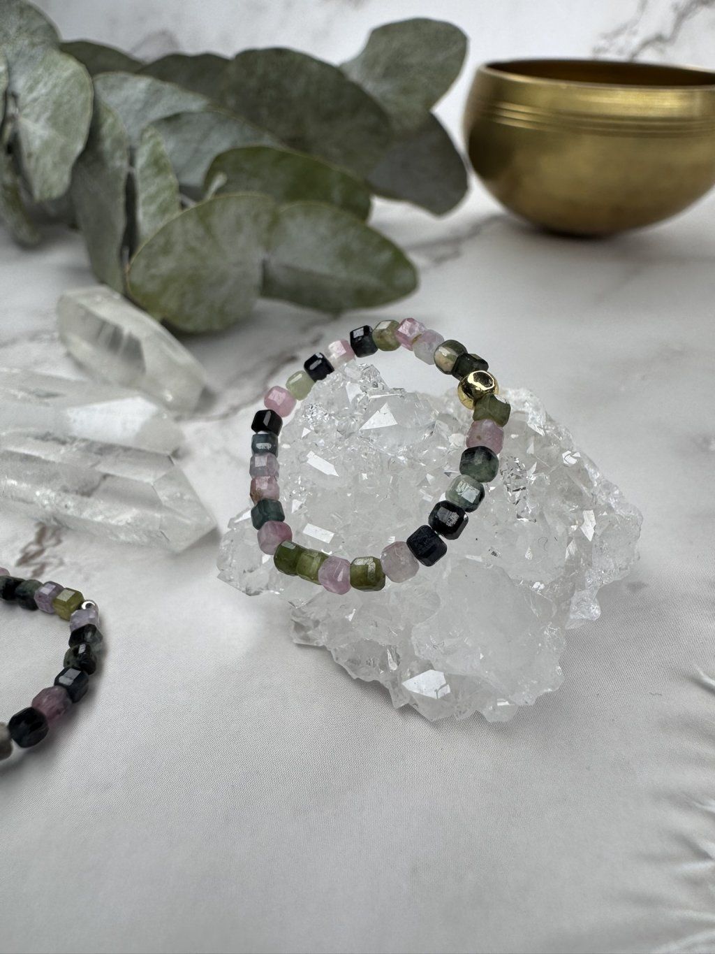 Naše prsteny z minerálů vznikají s důrazem na minimalismus a jemnost. Drobné kuličky o průměru 2-2,5 mm působí nenápadně, ale přesto zaujmou – hlavně díky tomu, že každý minerál má svůj vlastní charakter. Celý prsten z broušených turmalínů je navlečený na tenké, pružné gumičce, takže se pohodlně nosí a hezky se přizpůsobí prstu o obvodu cca 7 cm (velikost M) nebo 6,5 cm (velikost S).