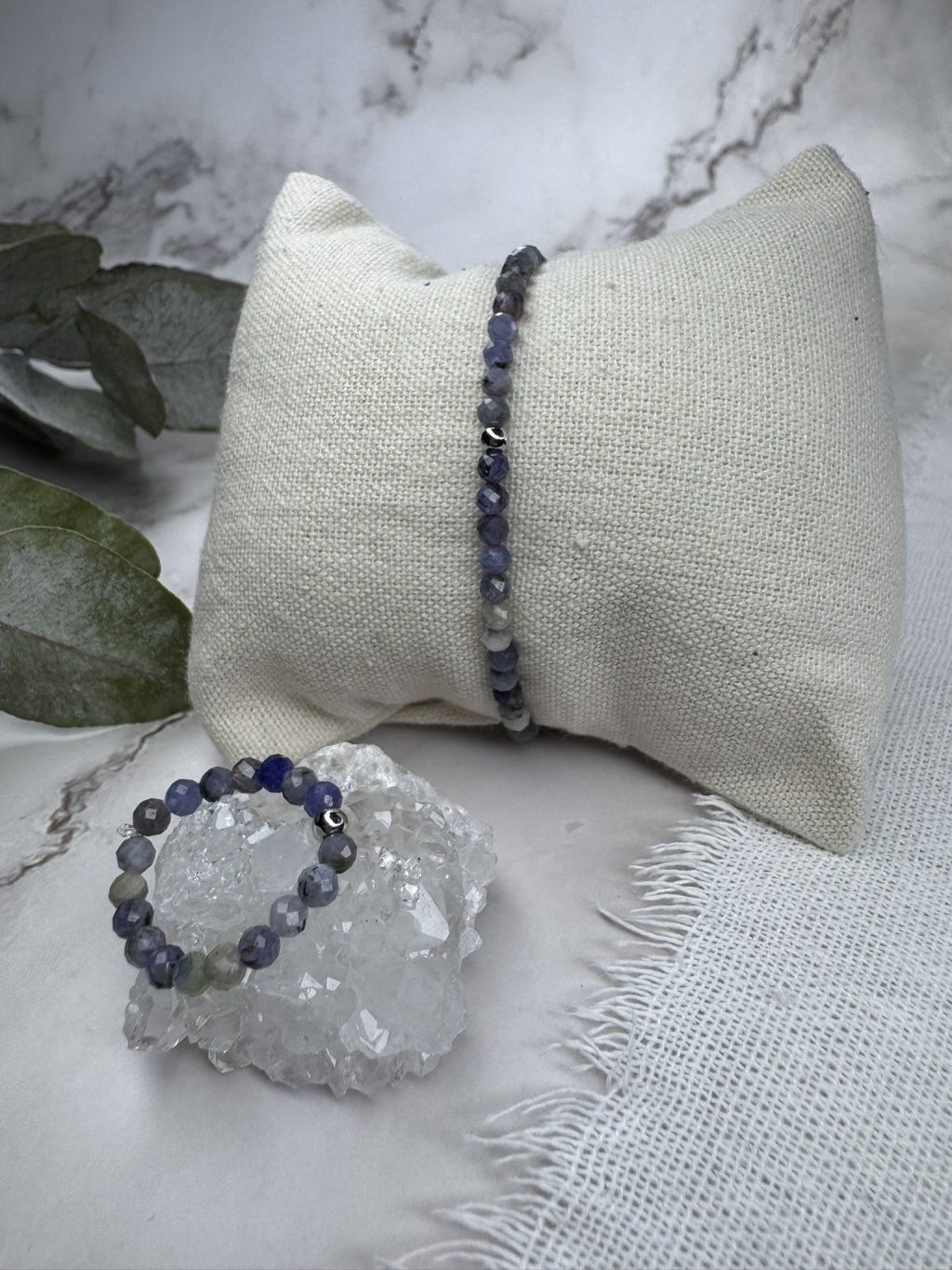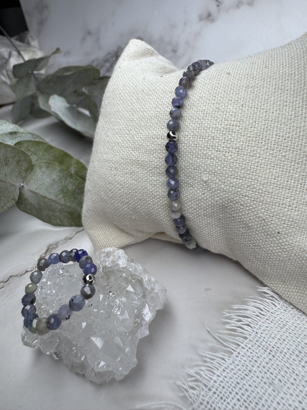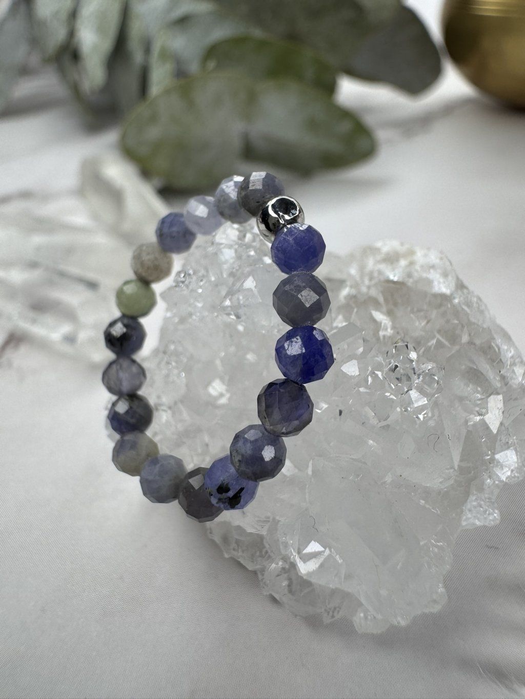 Broušené safírové kamínky zaujmou svou sytou barvou a přirozeným leskem. Safír je od pradávna symbolem moudrosti, ochrany a pravdy. Působí jako kámen, který pomáhá ukotvit mysl, podpořit soustředění a dodat odvahu stát si za svým. Prsten je navržený tak, aby se pohodlně přizpůsobil prstu, náramek je navlečený na pružné gumičce, díky čemuž se pohodlně nosí po celý den.